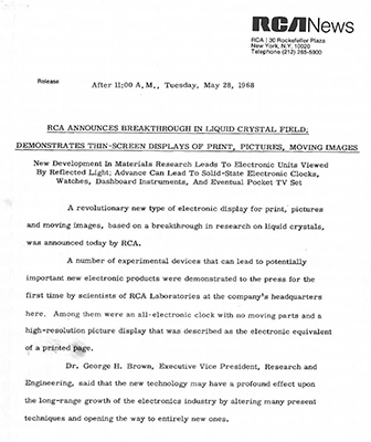 Click Image to view RCA's First Press Release of the first LCD